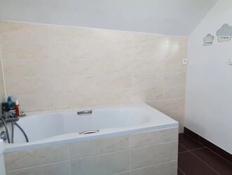 A l'étage un palier, deux chambres et une salle de douche avec WC.