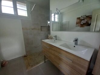 Cette maison Individuelle refaite a neuf vous propose en rez-de-chaussée une grande pièce de vie avec cuisine aménagée équipée ,espace buanderie ,toilette indépendante salle de douche.