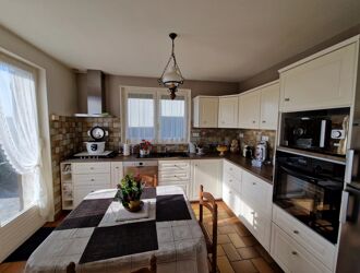 En exclusivité à 5 minutes de tous les commerces et écoles, cette maison familiale de plus de 170 m2 vous offre : une entrée, séjour avec cheminée insert, cuisine aménagée et équipée, salle de douche avec wc et espace buanderie, bureau, chambre. A l'étage : une suite parentale, 2 chambres, salle de douche avec wc. Chauffage électrique. Fenêtres double vitrage PVC. Assainissement individuel. Dépendance de 40m2. Le tout édifié sur un terrain clos de 1680 m2.