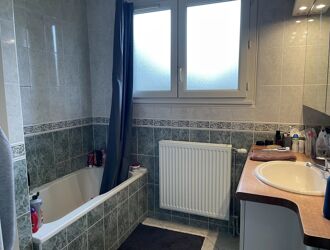 A l'étage 3 chambres, un dégagement et une salle de bains avec double vasque, baignoire , douche et WC.