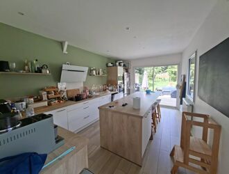 Dans un environnement calme et reposant venez découvrir cette maison atypique qui vous offre en rez de chaussée une entrée, un séjour et une cuisine ouverte équipée et aménagée.